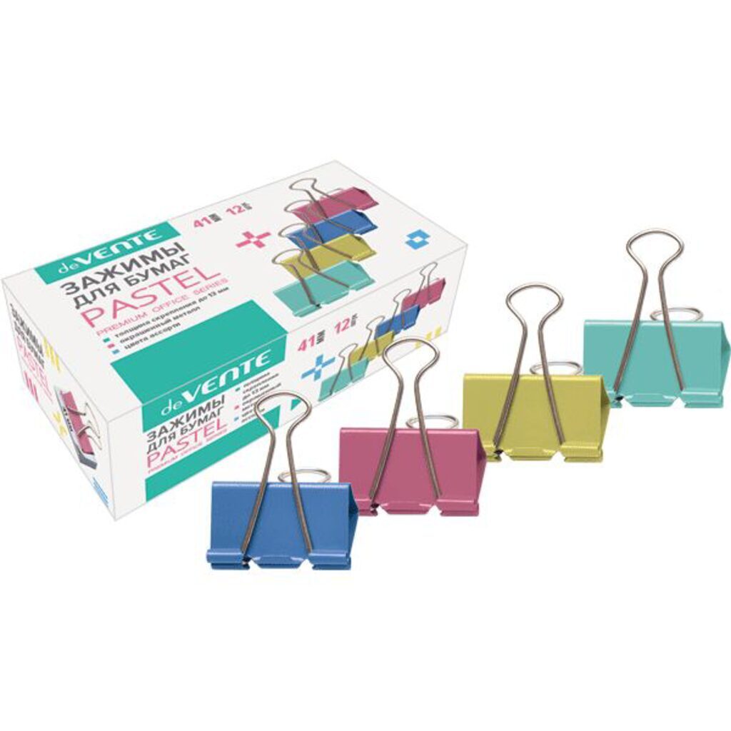 Зажим для бумаг "deVENTE" металлический (41 мм) на 200 л, цветной ассорти, 12 шт в картонной коробке